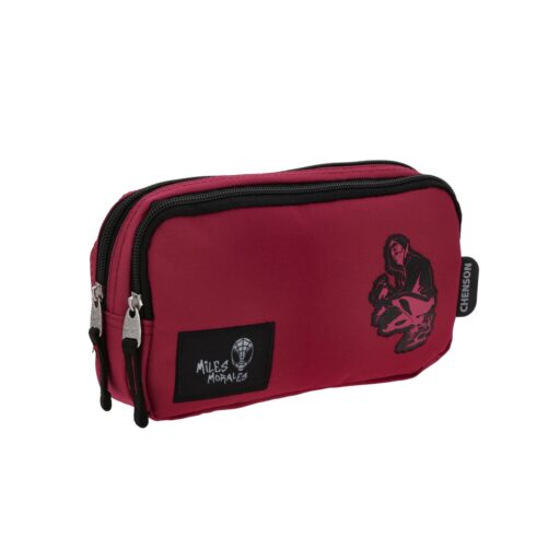 Lapicera Chenson Miles Morales Grafo en color tinto, con diseño único en serigrafía que resalta al personaje de Miles Morales. Con doble compartimento con cierre, ideal para organizar tus útiles de manera eficiente. Hecha de 100% poliéster, resistente y duradera. ¡No te quedes sin la tuya!